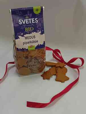 Sastāvdaļas: kviešu milti*, cukurs*, sviests*, medus* 5,6%, olas*, piparkūku garšvielas*, irdinātājs- dzeramā soda *no bioloģiskās saimniecības